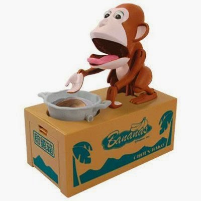 Kalau uang koin ditaruh di tempatnya, maka monyet akan memainkan koin itu dan memasukkan ke dalam kotaknya.